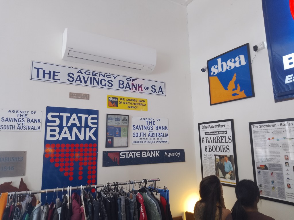 The old Snowtown bank is worth a visit – especially if you are interested in crime stories – and there are a lot of interesting things to see inside, not to mention being a great second-hand store. Don’t forget to support the other local businesses there, such as the larger bric-a-brac shop next door – as well as a pub across the road and a local supermarket a few doors down.